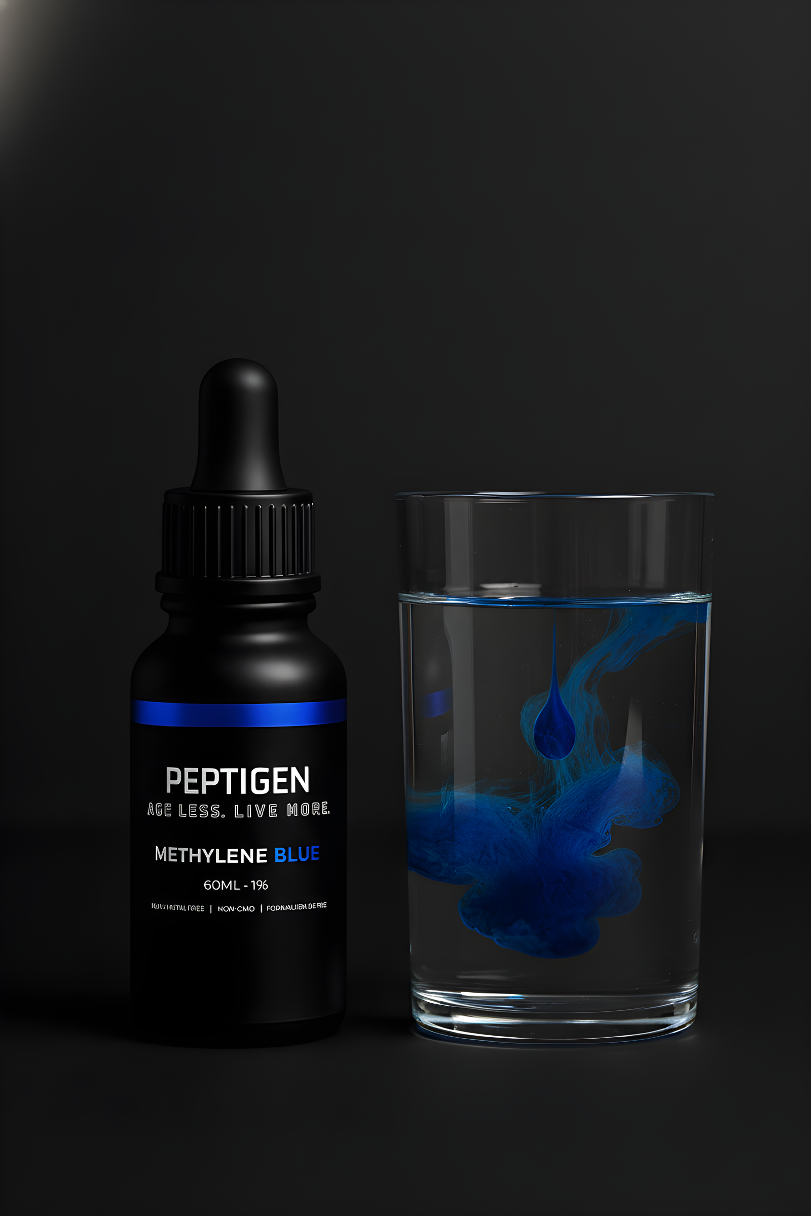 PEPTIGEN never uses artificial colorants — the deep blue colour comes from pure USP-grade methylene blue only.